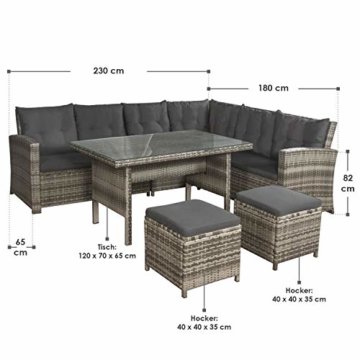 - ✔️ Bis 6 Personen: Polyrattan Lounge inkl. großem Eck-Sofa, 2 Hocker, Tisch & Kissen für gemütliche Stunden im Garten, auf der Terrasse oder am Pool; auch für Innen im Wohnzimmer oder Esszimmer
