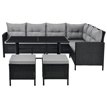 - ✅ Bis 7 Personen – Komfortable Polyrattan Lounge in trendiger Rattan Optik; Gartenlounge aus großem Sofa, 2 Hocker, Tisch & Kissen für gemütliche Stunden im Garten, auf der Terrasse oder einem Balkon